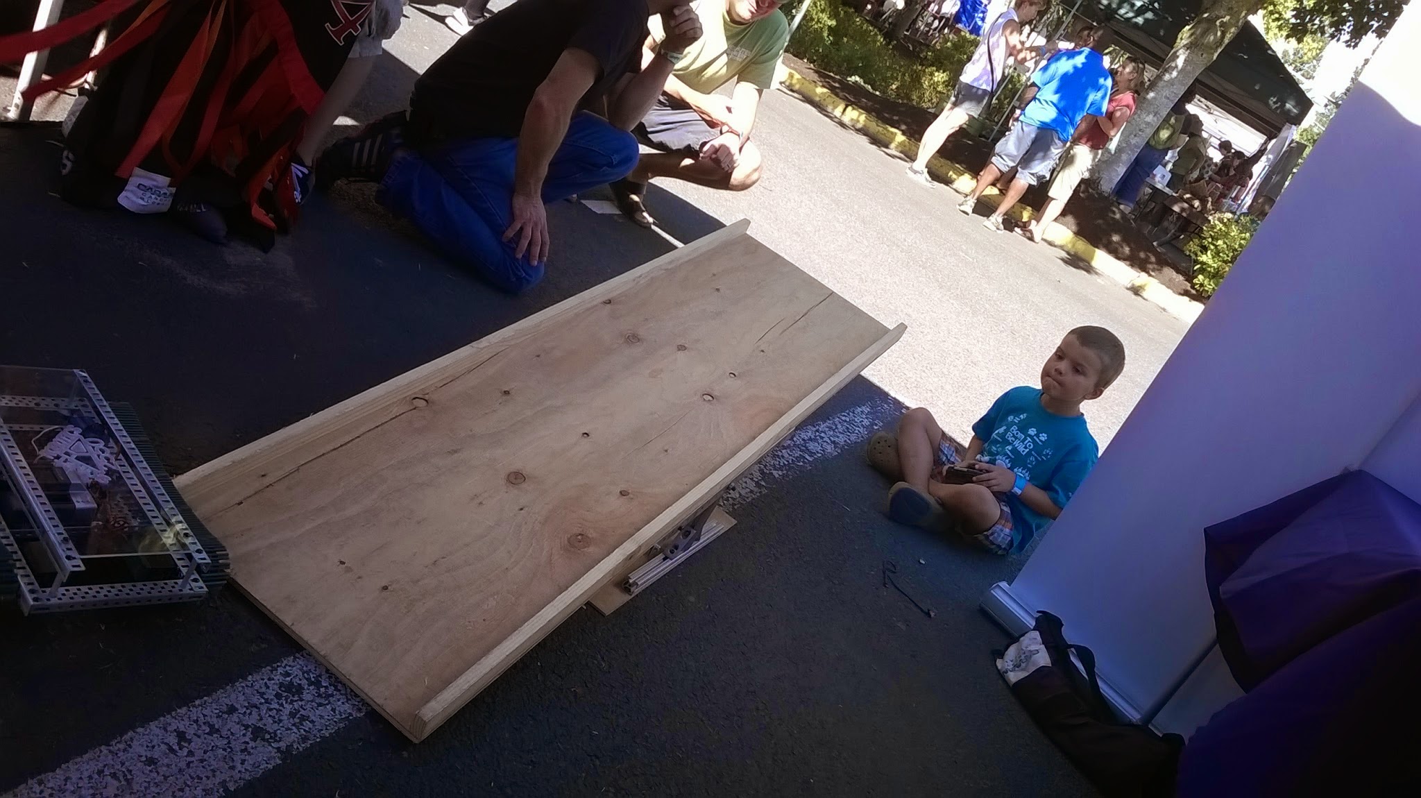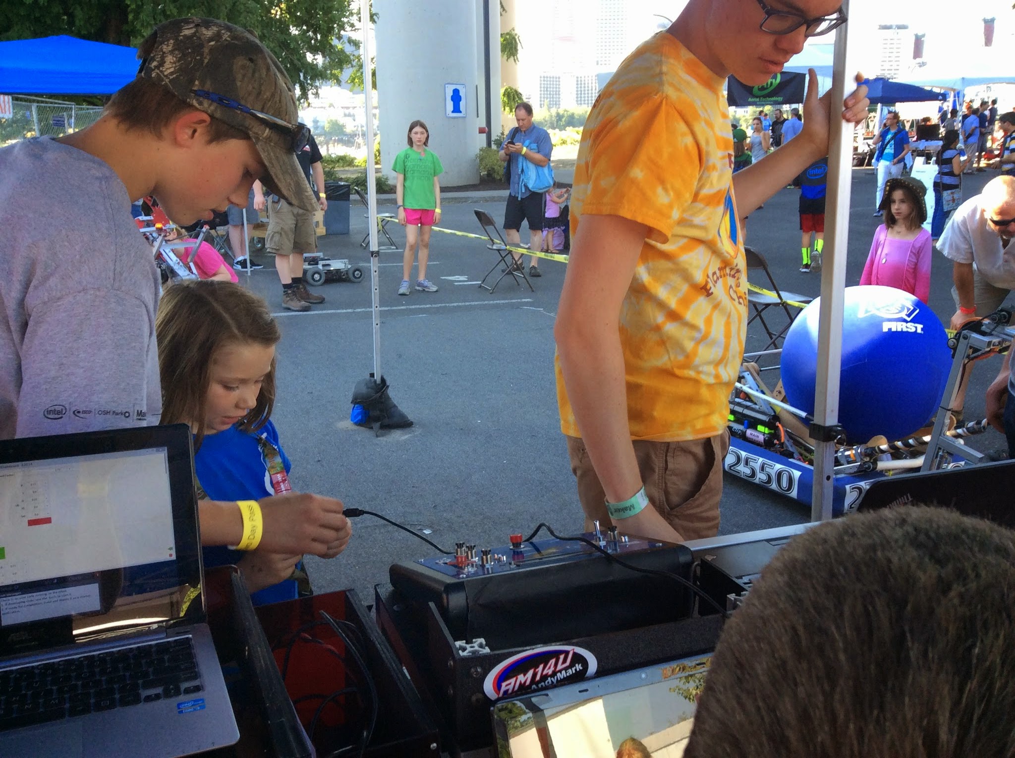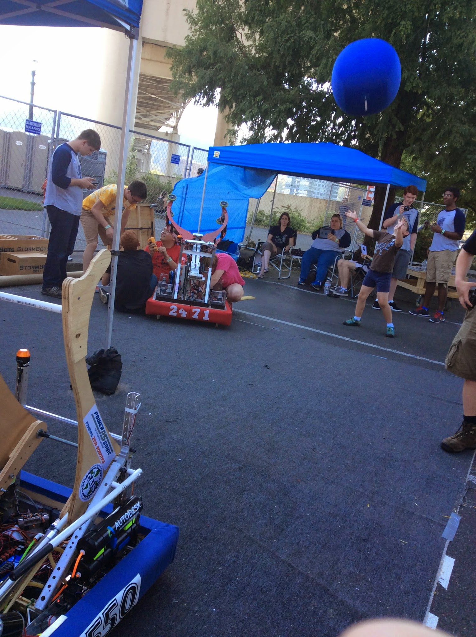 Kids were very excited to catch balls being launched from the teams bots, feeding the balls into the robots, driving a small robot, and pressing buttons on the remote to launch balls.