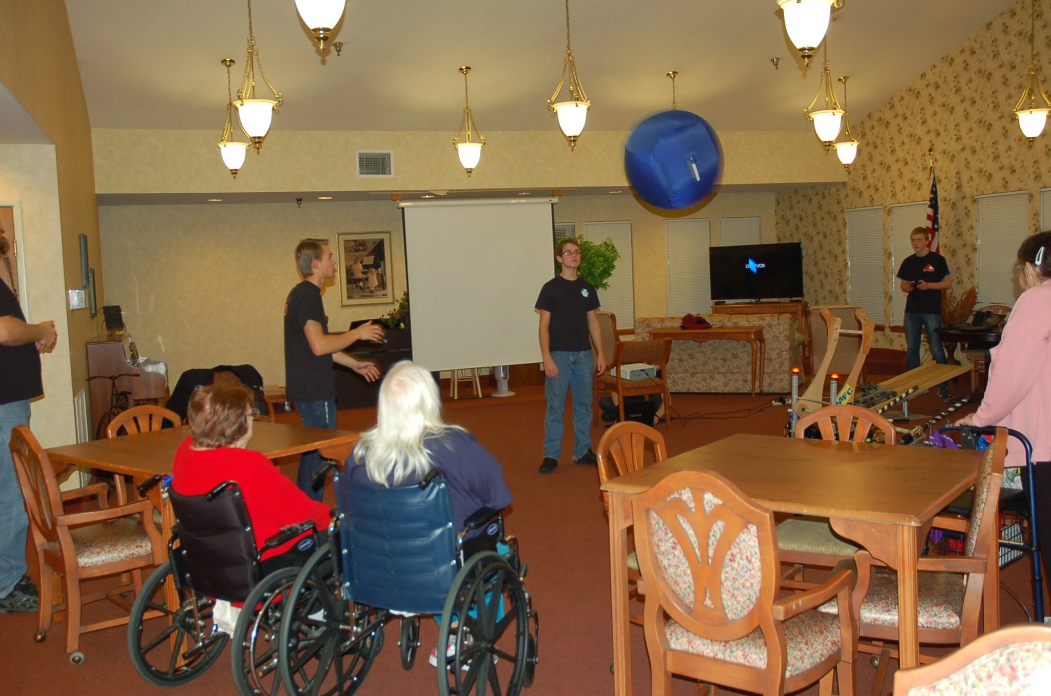 Today we went to the Gilman Park Assisted Living Center and presented our team. We were able to explain what FIRST is, and what an FRC team is and does. Our team was also able shoot a couple of balls, and play some videos of last year matches. You can view all the photos from that event here. Below are a few highlights.