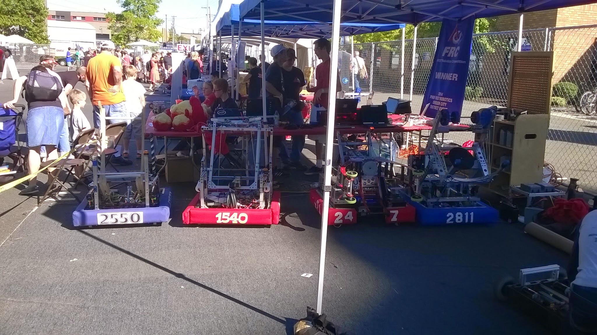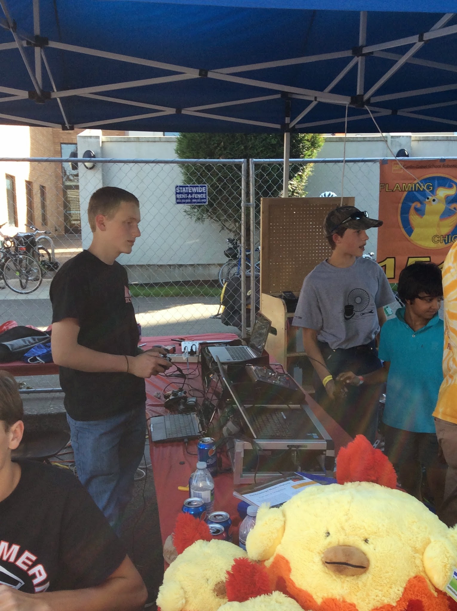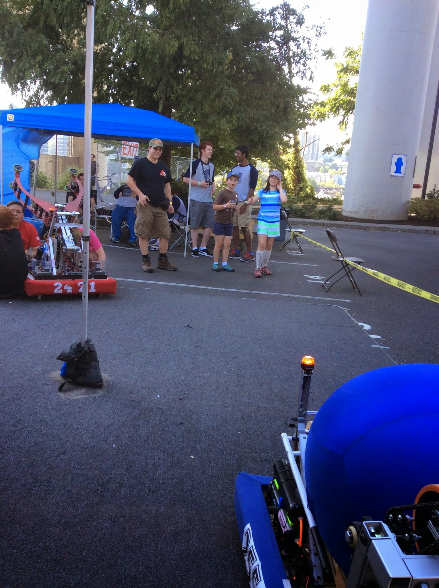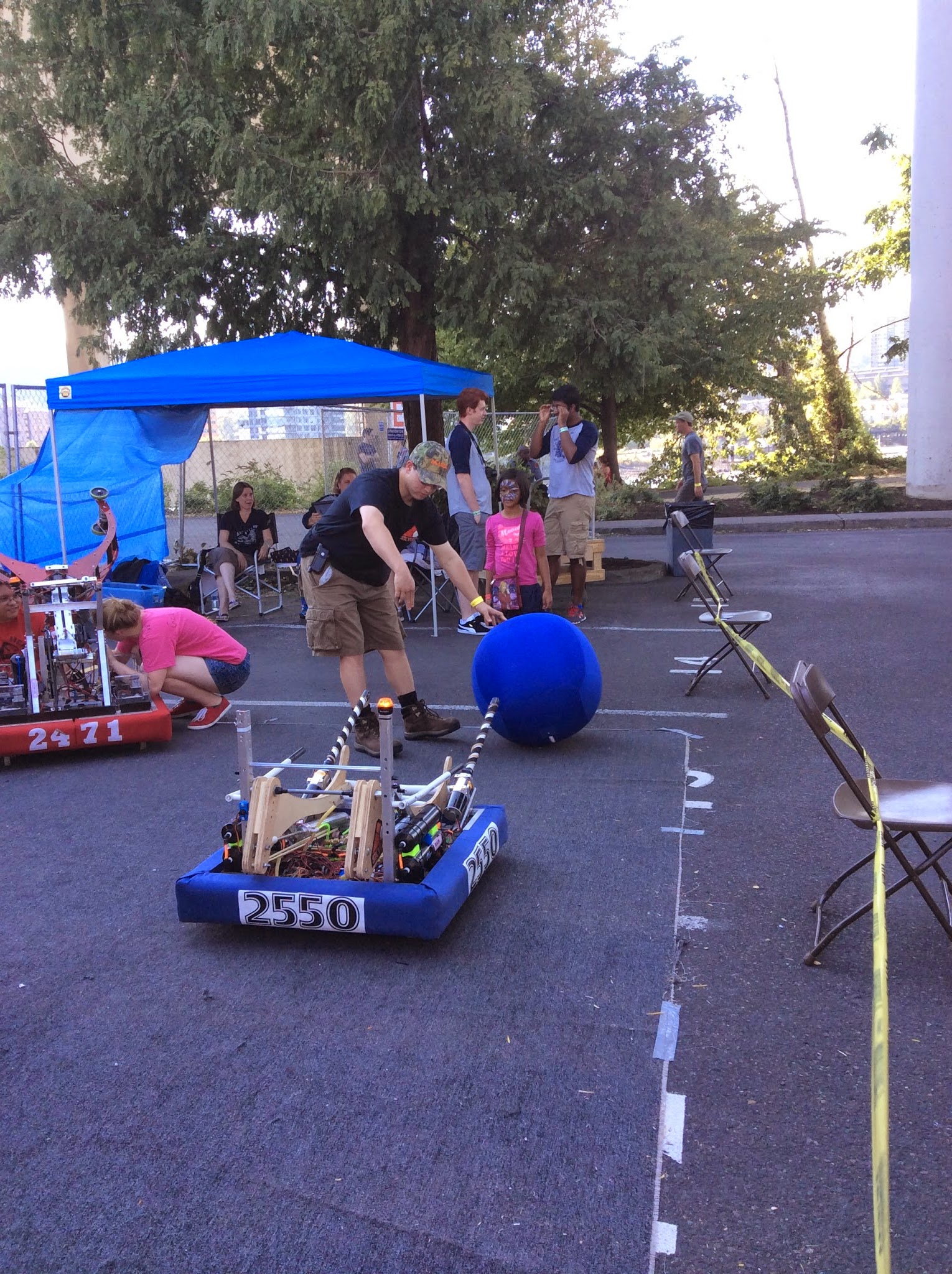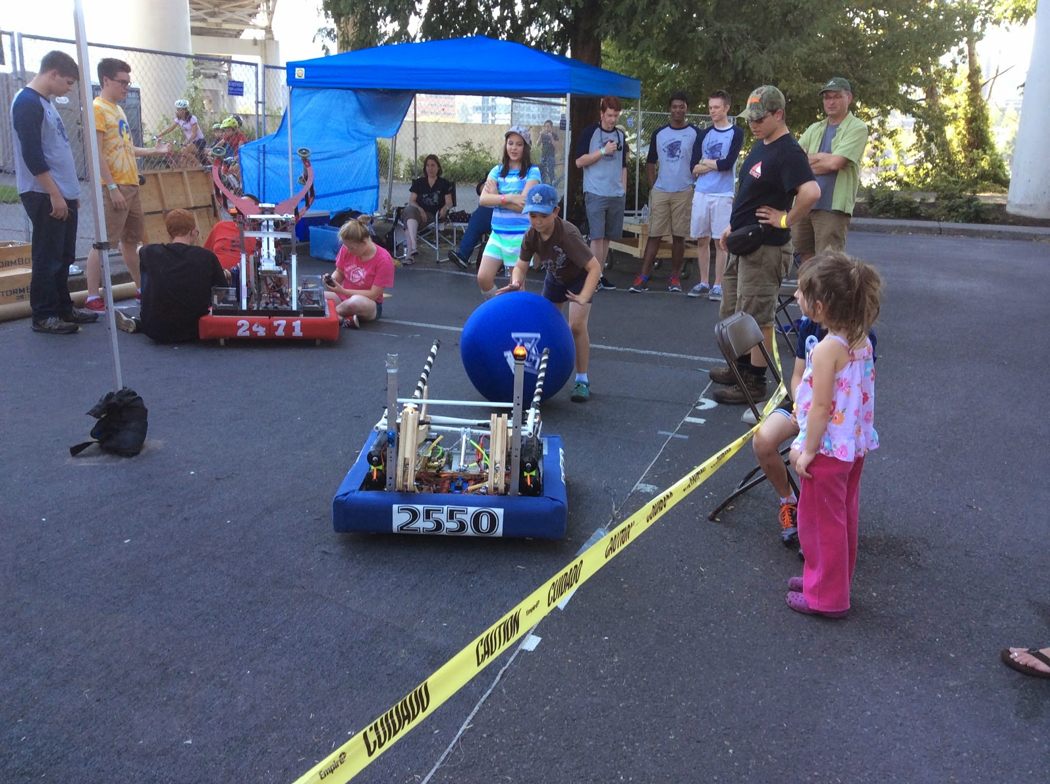 Kids were very excited to catch balls being launched from the teams bots, feeding the balls into the robots, driving a small robot, and pressing buttons on the remote to launch balls.